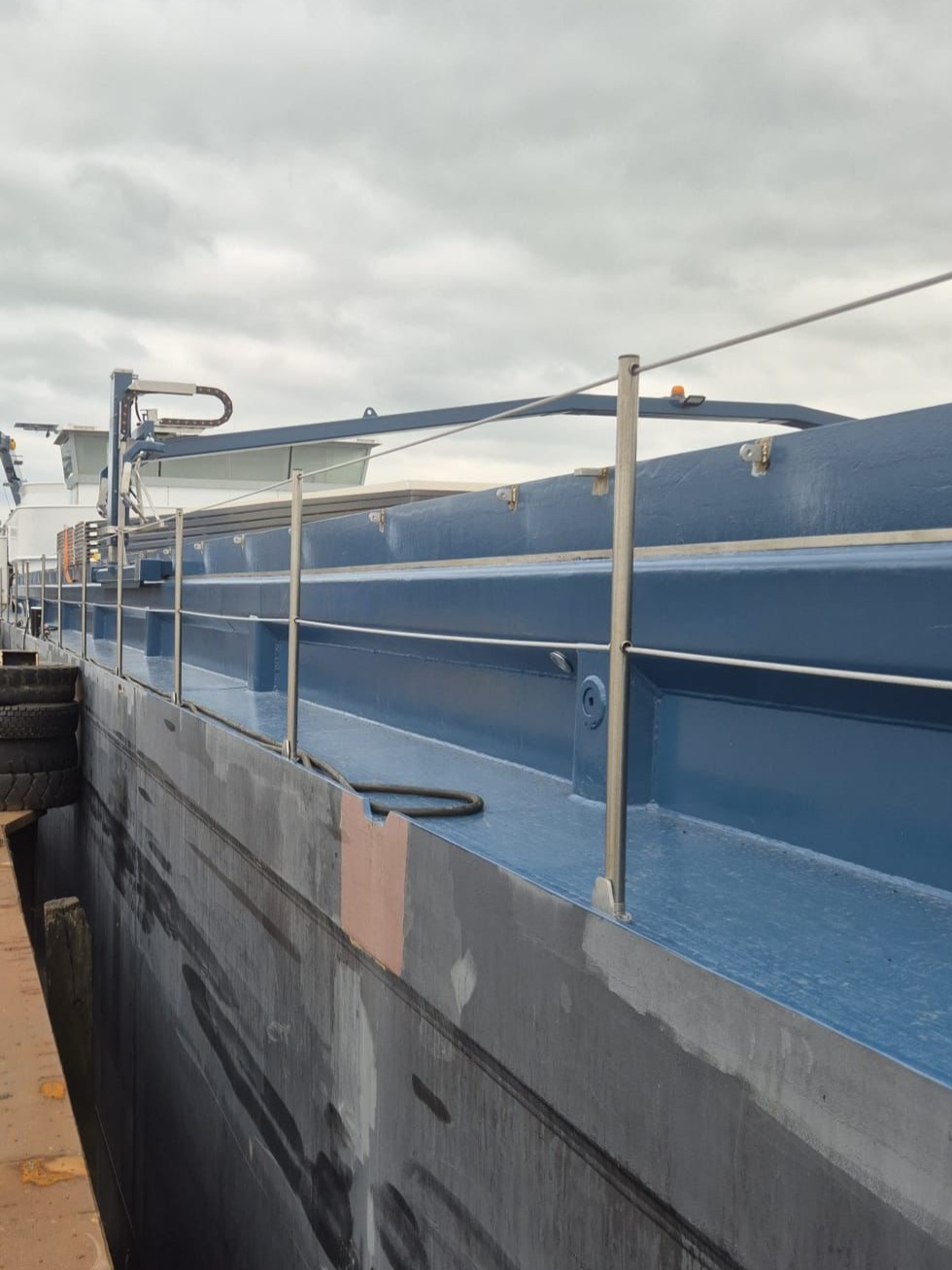 Naast het innovatieve ontwerp van de verende scepter, voldoet onze reling aan de veiligheidsvoorschriften voor schepen. De buitenkanten van de dekken, gangboorden en werkplekken, waar de valhoogte meer dan één meter bedraagt, moeten een verschansing van minimaal 0,90 meter hoogte hebben. Dit garandeert een veilige werkplek en voorkomt dat personeel overboord valt.